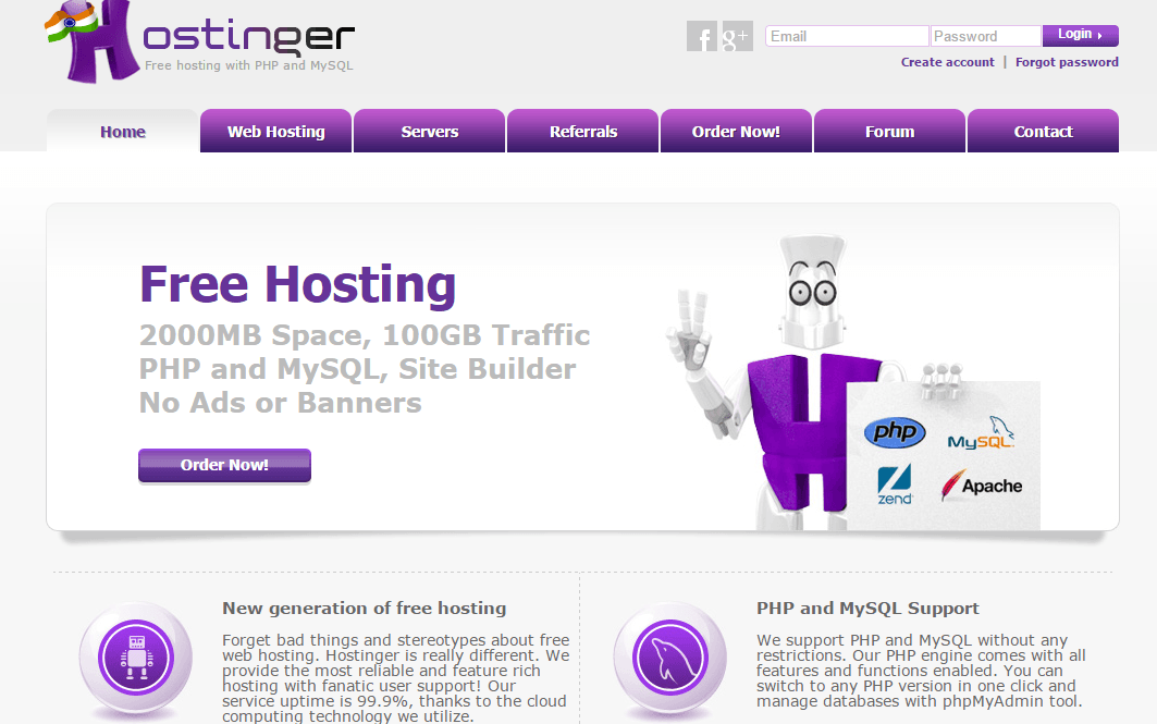 Absolutely free web hosting with cpanel, php & mysql for a stunning blogging start. We are going to sign up for their shared hosting service. Choose your web hosting plan · 1 website · 30 gb ssd storage · ~10000 visits monthly help_outline · 1 email account · free ssl ($11.95 value) help_outline · free . Hostinger offers free domains with different web hosting services and plans. Other than the above, hostinger also offers minecraft hosting and cyberpanel vps hosting.